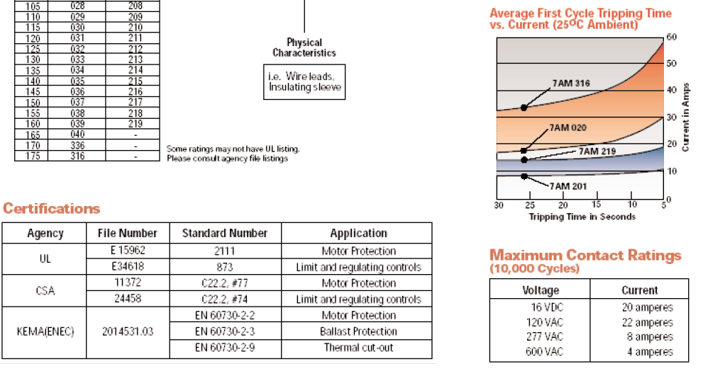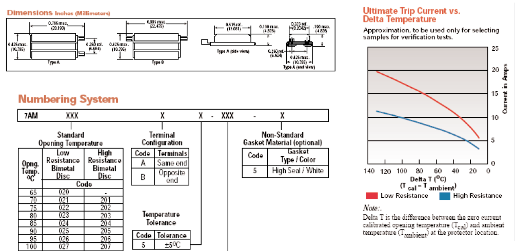 東莞市愛多電子有限公司代理銷售KLIXON/Sensata 7AM系列溫控開關(guān),其具體型號規(guī)格如下: