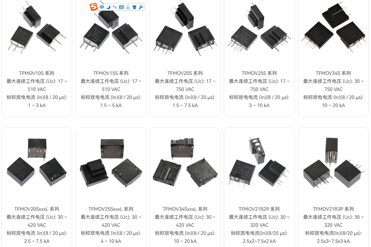 熱保護型壓敏電阻(TFMOV)是壓敏電阻與熱保護脫離部件的組合。壓敏電阻存在老化特性,熱保護型壓敏電阻能夠在壓敏電阻(MOV)劣化或失效時,通過熱保護部件的動作將壓敏電阻從主回路中脫離。常用于光伏逆變器,通信設備,機房電源等對可靠性和耐候性要求高的場所。