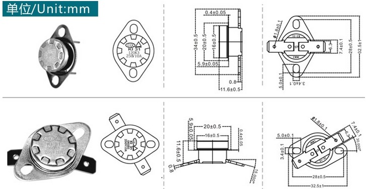 突跳式溫度保護(hù)器KI31/KSD301的具體規(guī)格如下:
