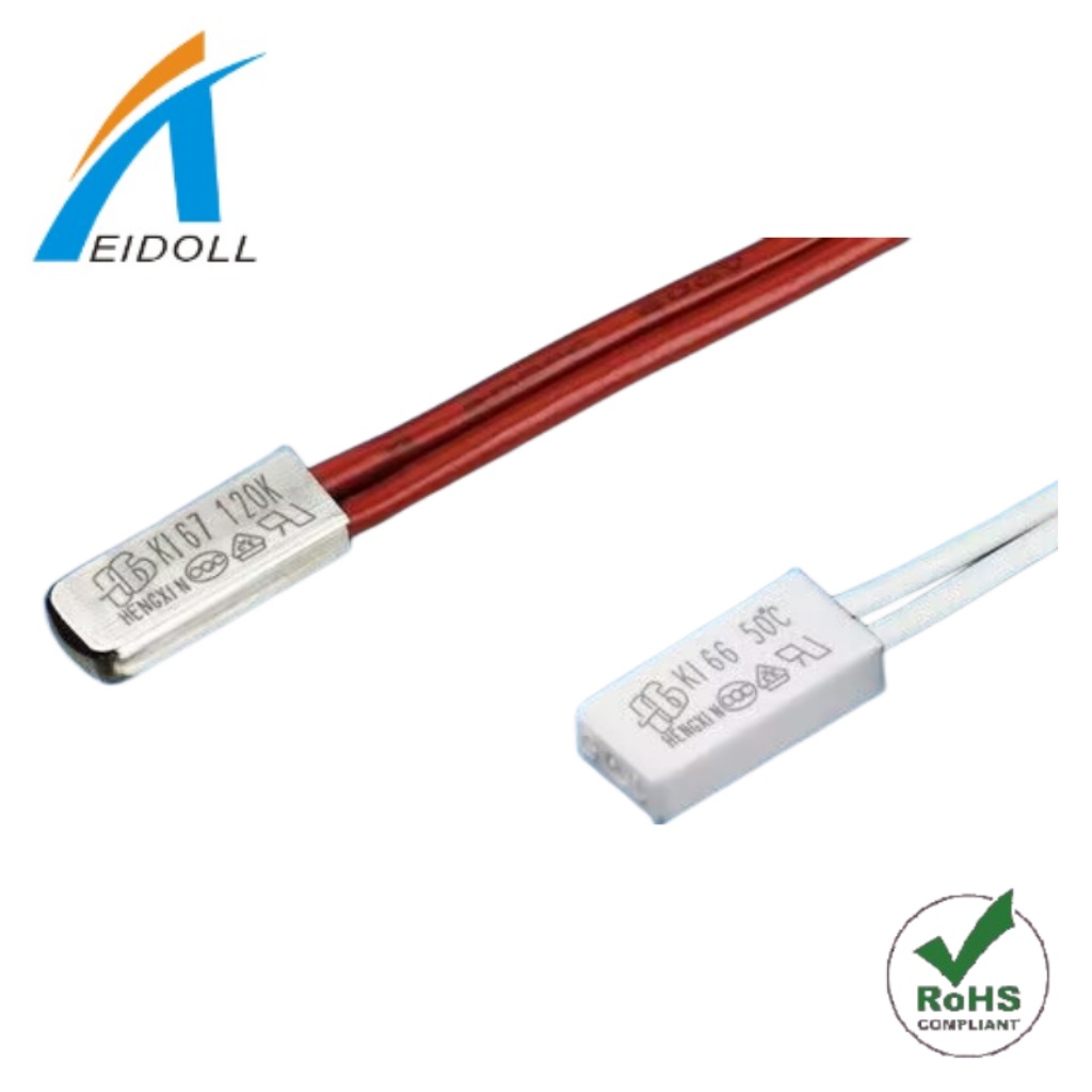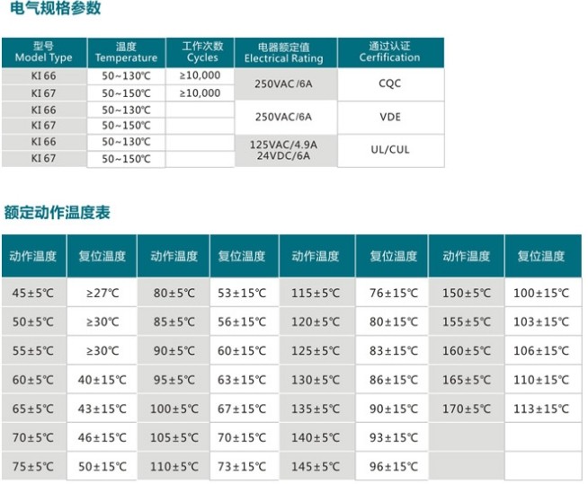 KI66/KI67熱保護(hù)器是由導(dǎo)熱金屬外殼/導(dǎo)熱塑料外殼、焊有銀合金觸點(diǎn)有雙金屬元件、導(dǎo)電支架、絕緣固定座、靜觸片及耐熱導(dǎo)線等元件組成。電流通過(guò)有阻抗的雙金屬元件,遇非正常工作時(shí),隨電流增大或周?chē)鷾囟壬咧猎O(shè)定溫度值時(shí),雙金屬元件迅速動(dòng)作,打開(kāi)觸點(diǎn),切斷電路。當(dāng)裝置冷卻到安全工作溫度時(shí),觸點(diǎn)自動(dòng)閉合,恢復(fù)正常工作狀態(tài)。