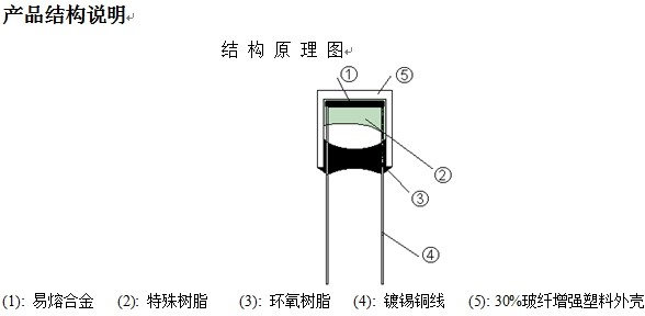 溫度保險絲按安全標(biāo)準(zhǔn)規(guī)定方法測試,改變其導(dǎo)電狀態(tài)的溫度。按基于IEC691的安規(guī)標(biāo)準(zhǔn)規(guī)定,