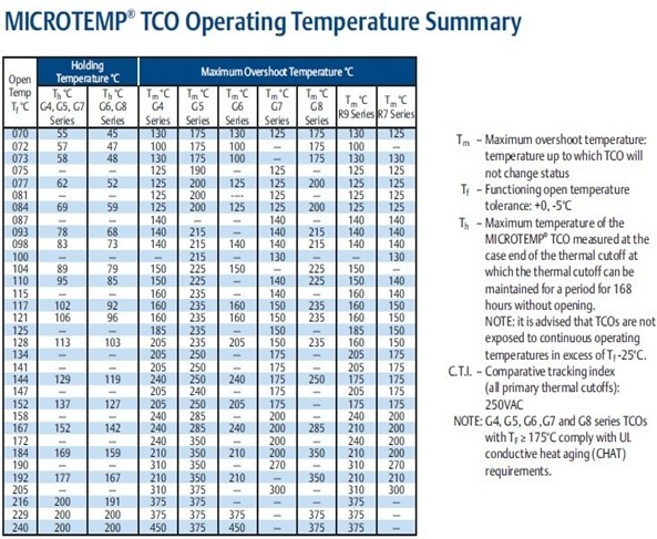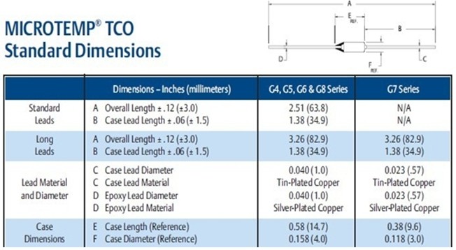 MICROTEMP熱熔斷器:型號(hào)與規(guī)格: