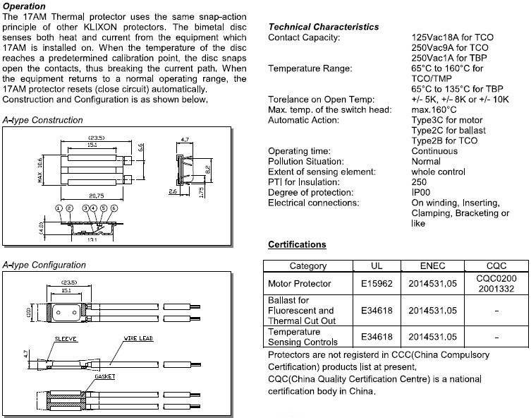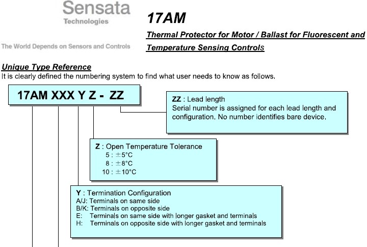 森薩塔SENSATA/KLIXON 17AM系列溫控器
