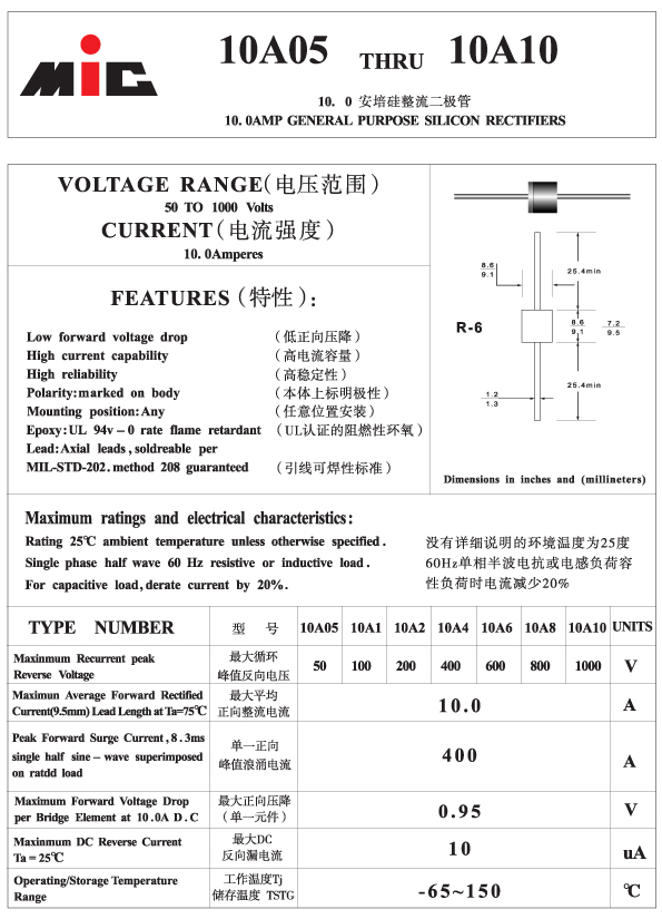 服務(wù)項目:10A05-10A10 MIC硅整流二極管