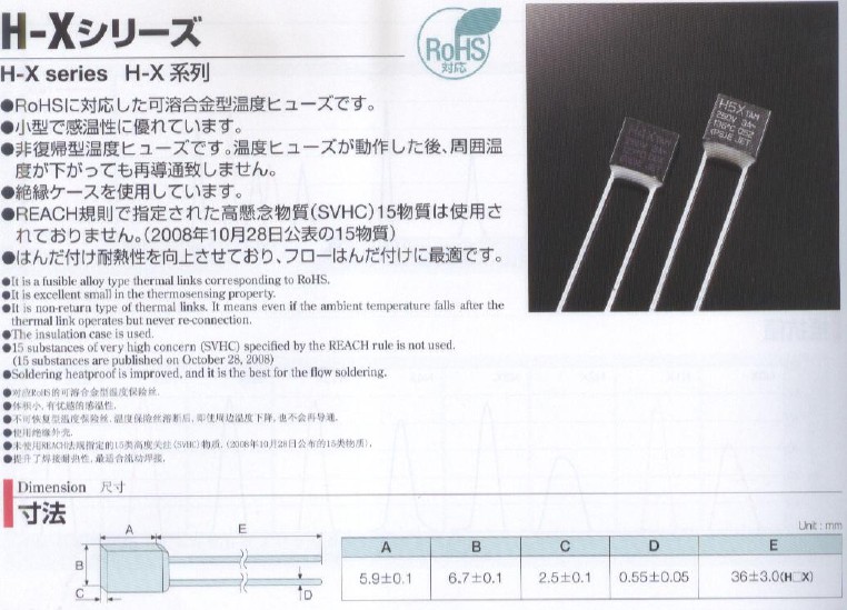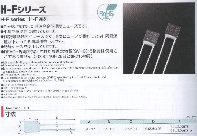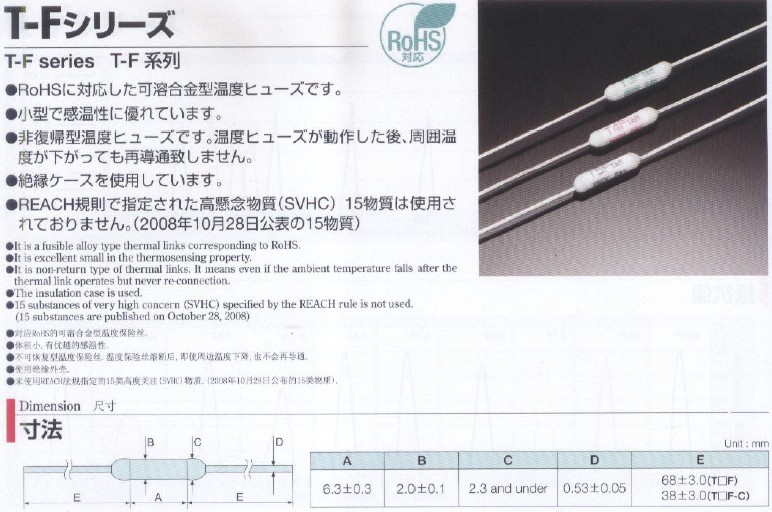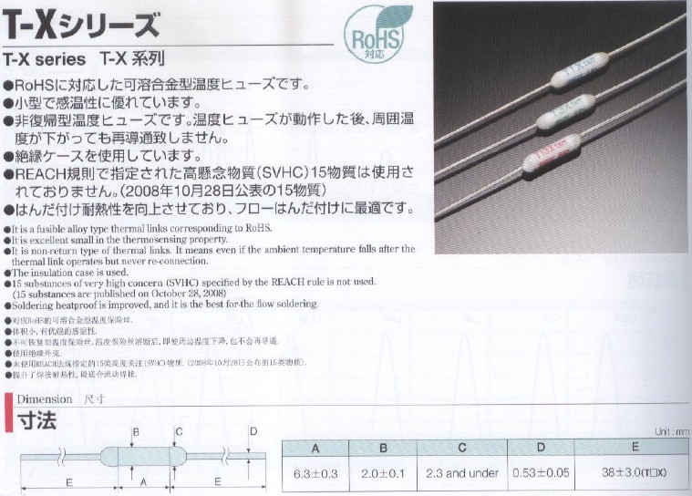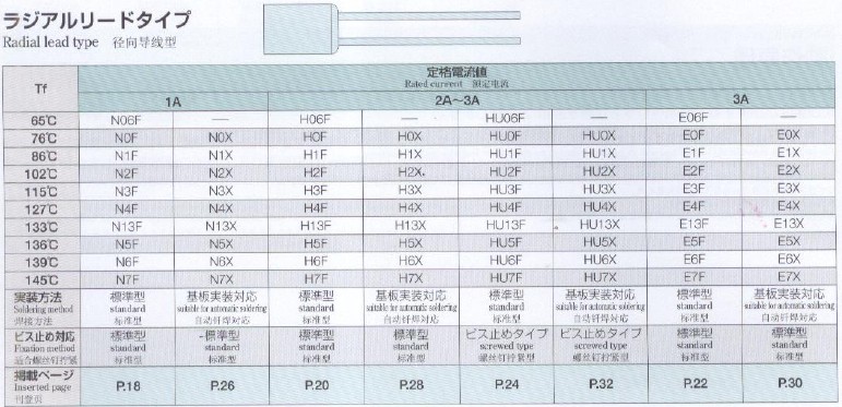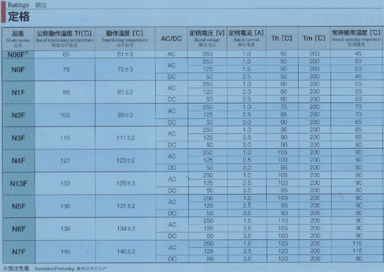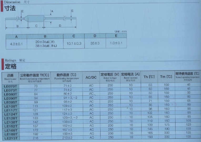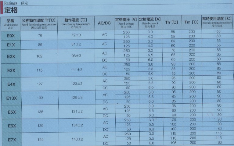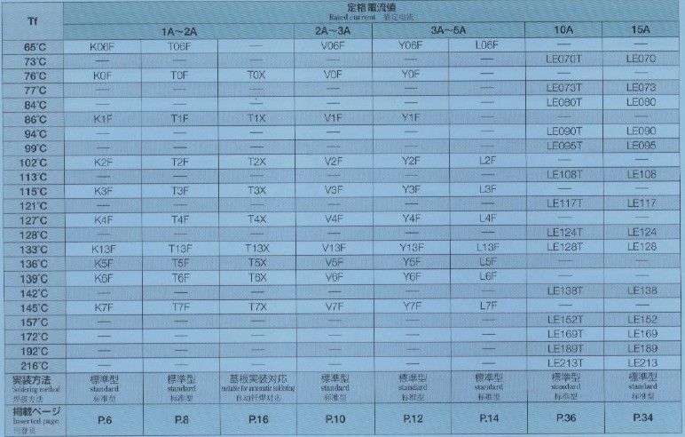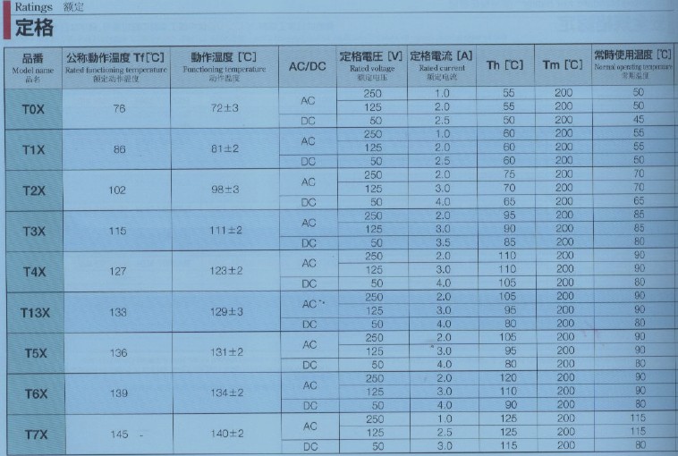 東莞市愛多電子有限公司銷售日本田村TAMURA各種型號溫度保險絲,其具體型號規(guī)格如下: