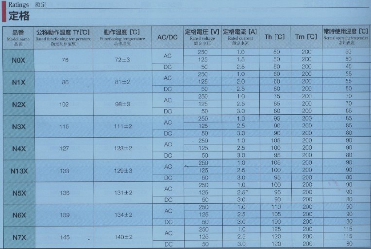 11)N-X系列,AC250V 1.0A/AC125V 1.5A-2.5A;具體型號如下: