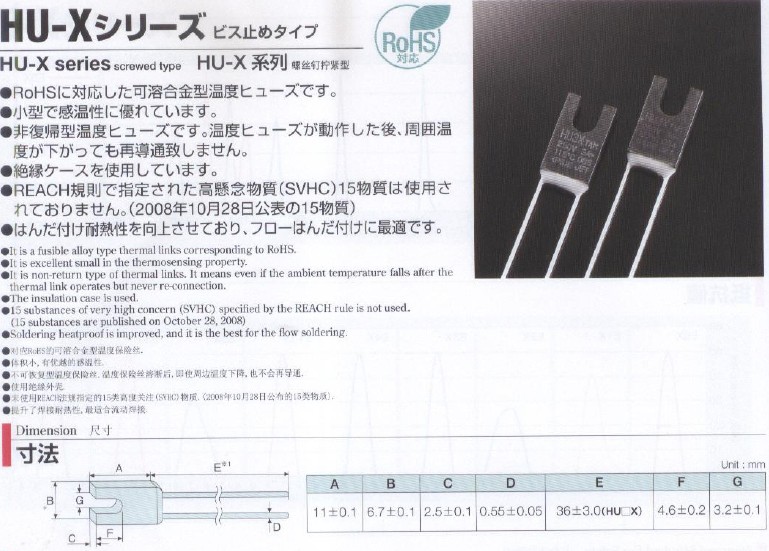 10)HU-F系列,AC250V 2.0A-3.0A/AC125V 3.0-3.5A;具體型號如下: