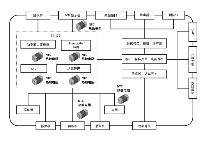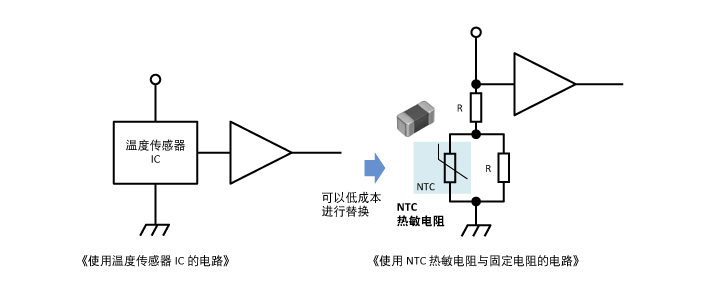 NTC熱敏電阻分為盤式、SMD、玻璃封裝二極管、樹脂封裝被膜線等形狀,而作為溫度保護(hù)器件嵌入到電路中的則是通過積層工藝制造的SMD形狀貼片NTC熱敏電阻。以下就溫度檢測與溫度補(bǔ)償?shù)茸鳛闇囟缺Wo(hù)器件使用的貼片NTC熱敏電阻應(yīng)用示例進(jìn)行介紹。