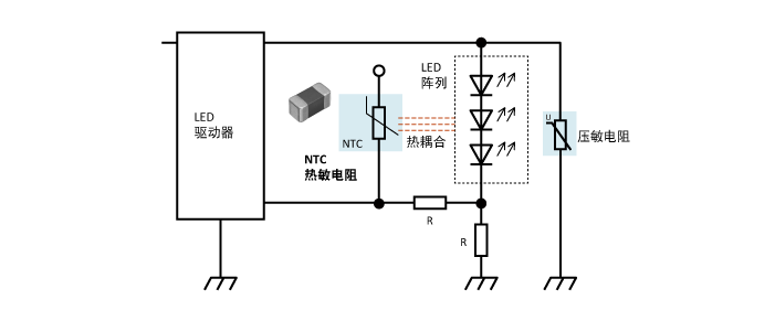 NTC熱敏電阻是一種電阻值隨溫度上升而出現(xiàn)急劇下降的熱敏電阻器件。利用這一性質(zhì),除了溫度傳感器以外,其還可以作為溫度保護(hù)器件用來保護(hù)電路免受過熱造成的影響。