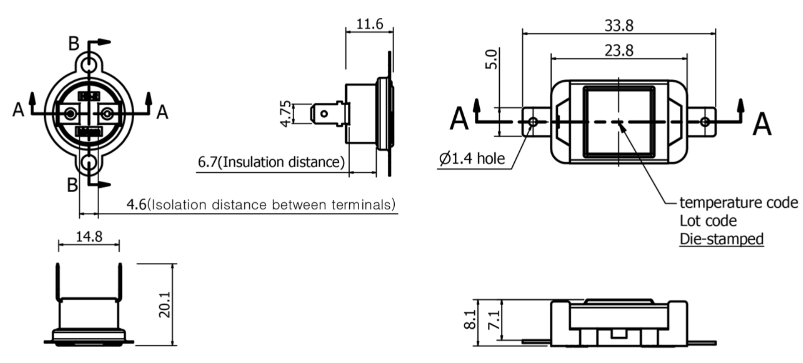 Single Operation Fuse Disc Available Contacts : Open on temperature rise, no closure unless the temperature 0°C or below -35°C