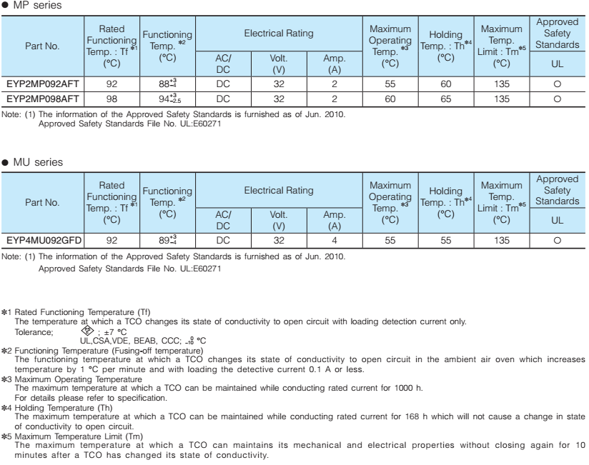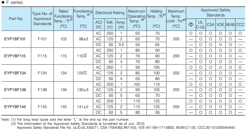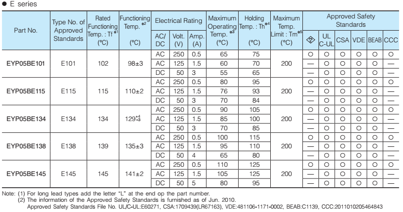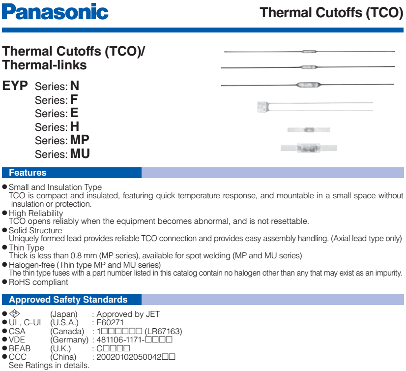 Eidoll Electronics Co., Ltd. sales the Panasonic fuse, many models have store, the purchase cycle is not long. The specification for all models as below: