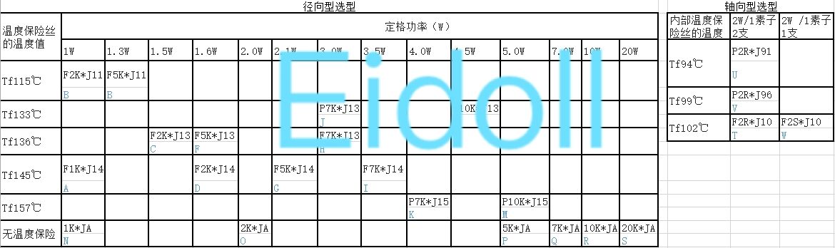 Eidoll Sales the Thermal cutoffs/Resistor Ass'y, the specification as below: