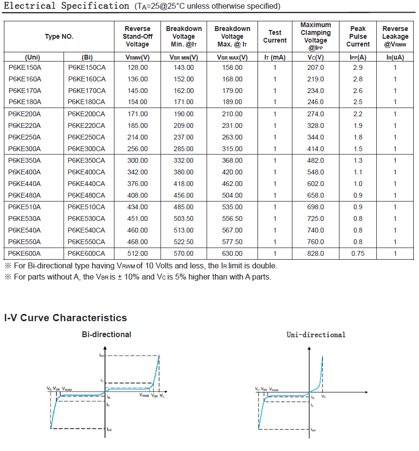 EIDOLL sales the TVS diode ,P6KE series, the specification as below: