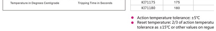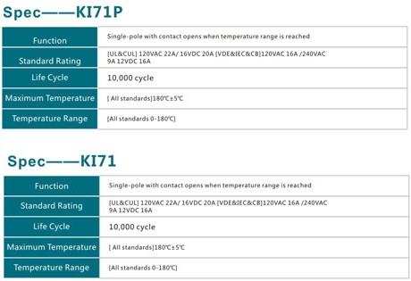 KI71/KI71P is an excess-current thermal protector with compact in size. Main applications of KI71/KI71P are as follows:Motor / ballast for fluorescent lamp /Transformer, Laminator and various sort of household appliances.